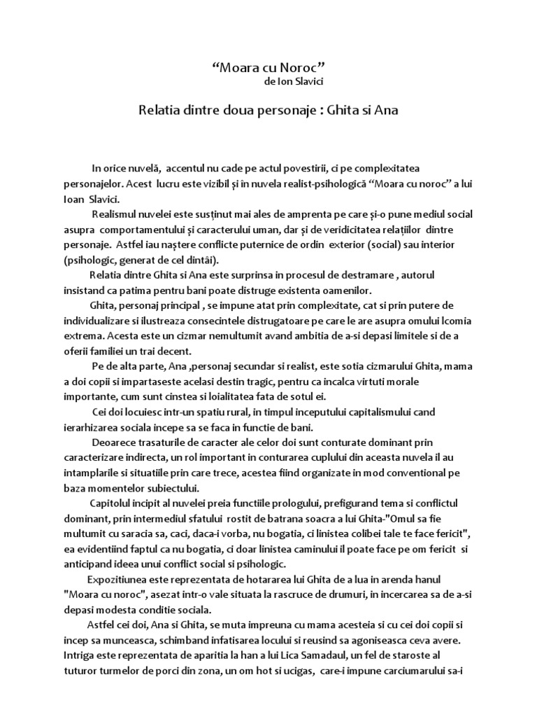 Doc Relatia Dintre Doua Personaje Ghita Si Ana Moara Cu Noroc De Ioan Slavici Elena Grigorescu Academia Edu