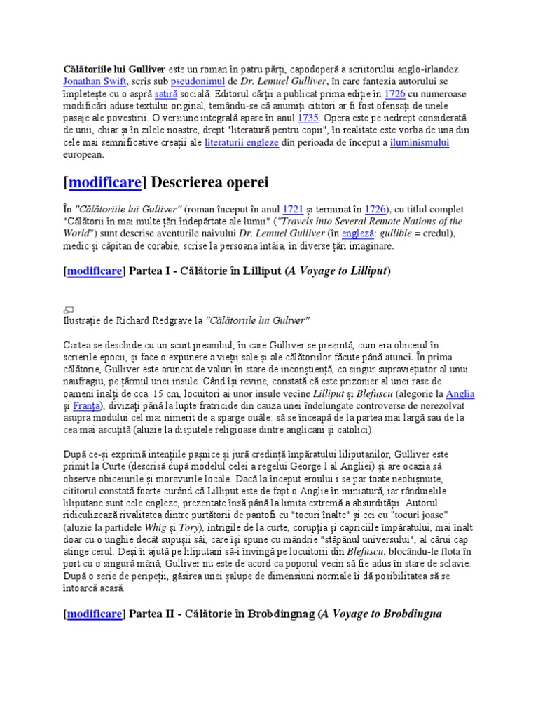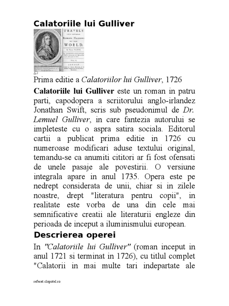As Dori Un Rezumat La Cartea Calatoriile Lui Gulliver De Jonathan Swift Rezumatul Sa Nu Fie Nici Brainly Ro