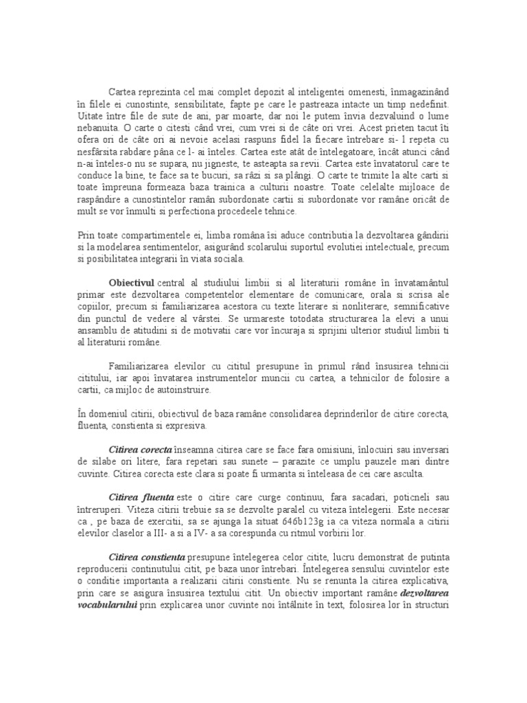 Importanța Lecturii La Ciclul Primar Didactic Ro