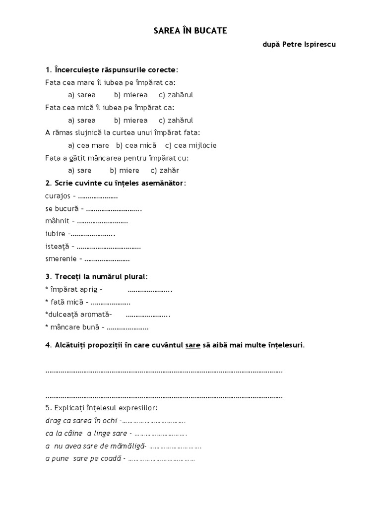 Sarea In Bucate Fișe Cu Elemente Grafice Teacher Made