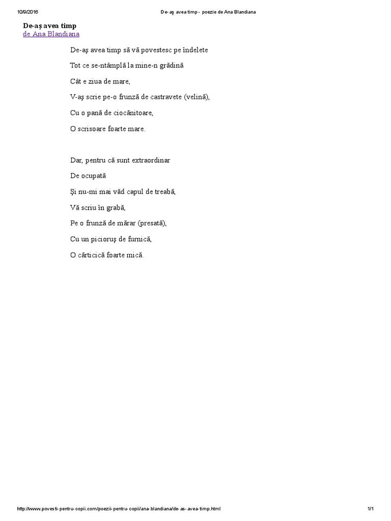 De As Avea Timp Poezie De Ana Blandiana