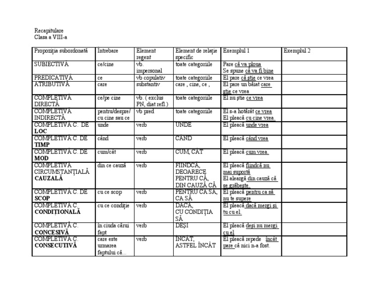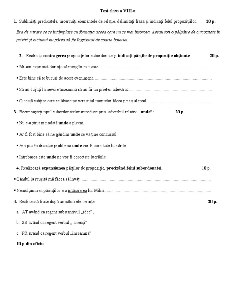 Test Grila 1 Sintaxa Frazei Pentru Clasa A Viiia