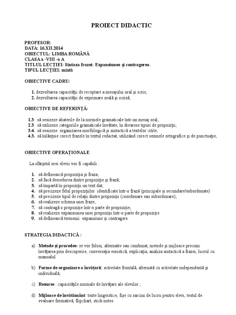 Sunt Profesor Si Sunt Fericit Noţiuni De Sintaxă Clasa A Viii A