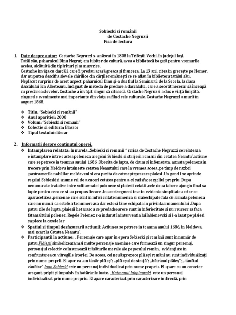 Personajele Din Nuvela Sobieski Si Romanii Rezumate Cărți Citeste Cărți Online Pdf Caracterizări Referate Si Comentarii Cărți