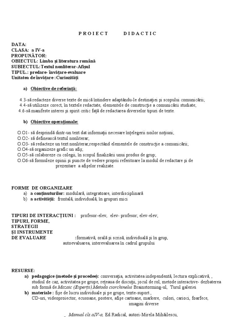 Doc Proiect Didactic Catalin Manolache Academia Edu