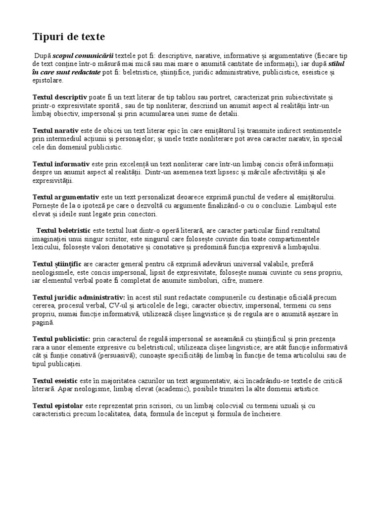 Doc Tipuri De Texte Andrei Mira Academia Edu
