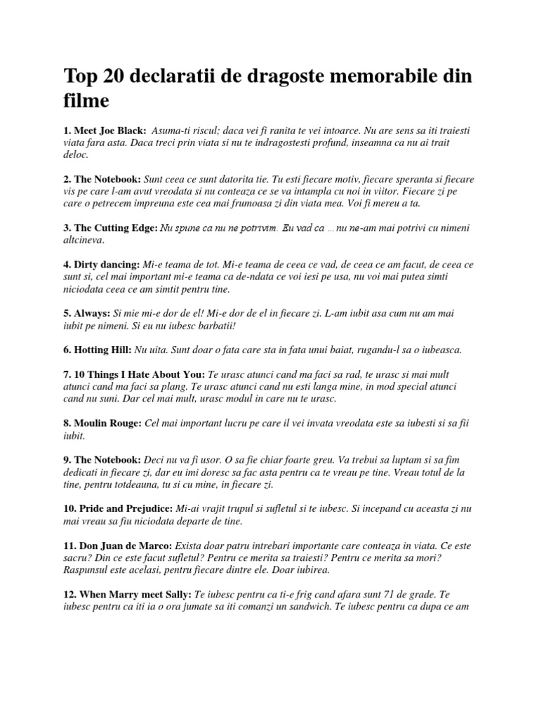 Top 20 Declaratii De Dragoste Memorabile Din Filme