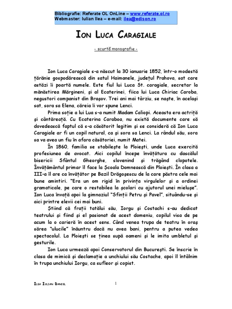 Fisa Biografică A Lui Ion Luca Caragiale Urgent Brainly Ro