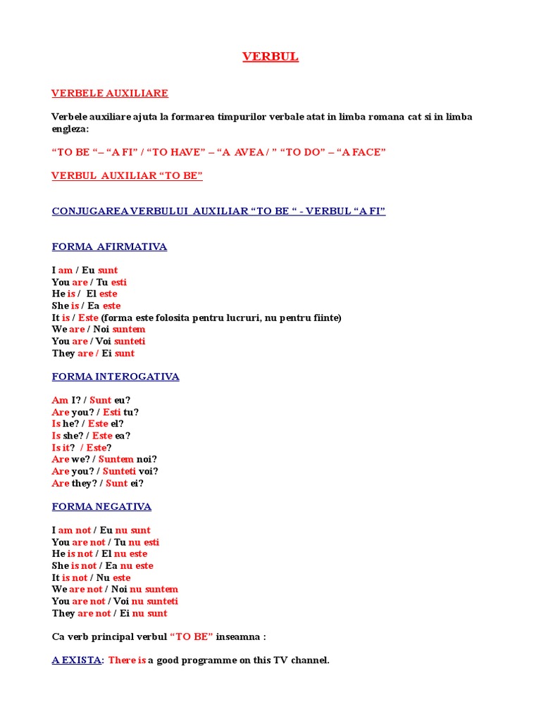Verbul Conjugarea Verbului Auxiliar To Be Verbul A Fi