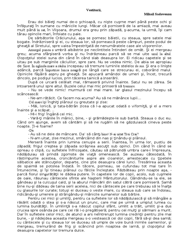 Cine Imi Poate Spune Si Mie Povestirea De La Vestitorii De Mihail Sadoveanu Urgent Brainly Ro